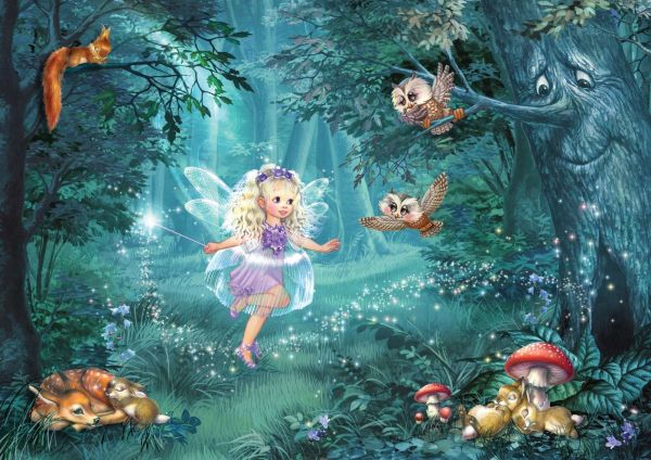 Questo design da favola cattura la magia di una foresta incantata in cui una graziosa fata con ali di farfalla è al centro. Emana una luce soffusa mentre, con la sua bacchetta magica, dà vita all'ambiente boschivo. La scena è popolata da animali della foresta amichevoli, tra cui gufi curiosi, uno scoiattolo giocoso e cervi e conigli che dormono, creando insieme un'atmosfera armoniosa e pacifica. Lo sfondo è dominato da un lussureggiante paesaggio boschivo con alberi alti, dove la dolce luce della luna filtra attraverso le foglie. La fata fluttua sopra un campo pieno di scintillanti particelle di luce, funghi rossi con macchie bianche e delicate fiori che aggiungono un tocco extra di magia alla scena. Un vecchio albero sorridente sembra proteggere la fata e i suoi amici animali, evocando un senso di sicurezza e connessione. Questo design è perfetto per una cameretta o uno spazio giochi, dove crea un'atmosfera fantasiosa e sognante. Per un angolo lettura o uno spazio relax, porta un senso di calma e magia. Combina con mobili e accessori in tonalità naturali come verde, marrone e bianco tenue per abbracciare completamente l'atmosfera della foresta incantata. I colori tenui e gli elementi dettagliati rendono questo design ideale per trasformare uno spazio in un luogo di meraviglia e ispirazione. Invita a raccontare storie e sognare, mentre l'ambiente boschivo magico aggiunge un fascino unico a ogni interno.