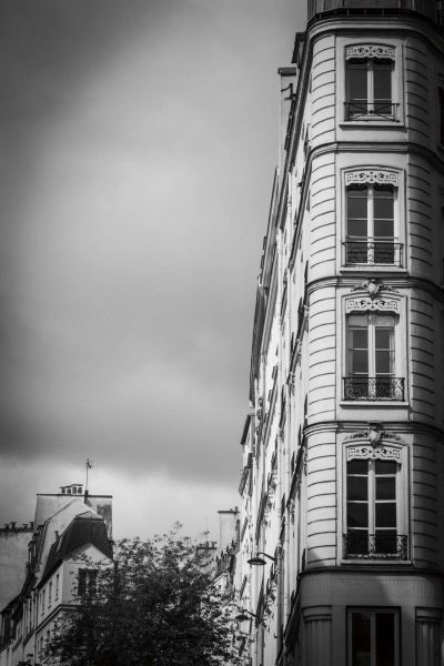Facciata parigina in una luce soffusa.