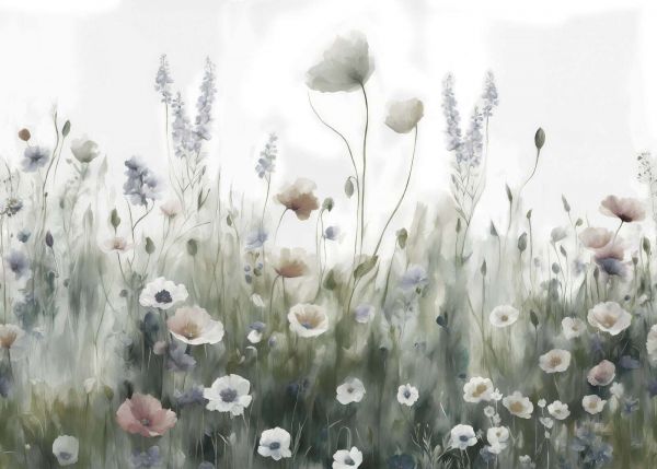 Un'armonia di morbide tonalità di grigio conferisce a questo design ad acquerello un aspetto rilassante e moderno. I fiori rappresentati in modo sottile emergono elegantemente su uno sfondo sobrio e neutro.Le sottili variazioni di grigio accentuano la sensazione di profondità e conferiscono un carattere senza tempo, adatto a diversi stili di arredamento.
