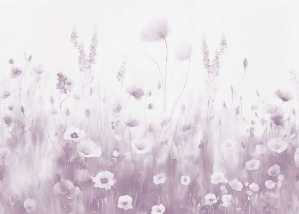 Toni viola profondi formano in questo design ad acquerello uno sfondo regale e mistico, in cui i fiori sono avvolti da un'atmosfera lussureggiante. I contrasti di colore e forma conferiscono all'insieme un accento drammatico e artistico.Questa ricca base viola dà al design un aspetto unico e chic, che sicuramente fa una dichiarazione nel tuo arredamento.