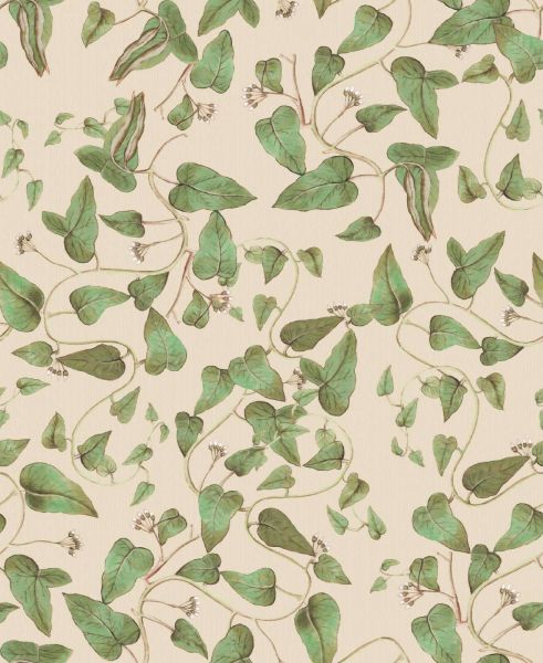 Vignette giocose di rampicanti di fagiolo con foglie verde fresco e delicati fiori bianchi si snodano su uno sfondo crema morbido. Le forme naturali e i dettagli dipinti a mano danno vita a una fresca e ariosa atmosfera botanica.