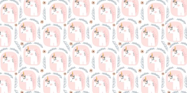 Un modello con unicorni fatati. Combinate questa carta da parati con foto nella stanza dei bambini per un'atmosfera ancora maggiore.