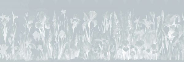 Questa variante gioca con tonalità più fredde e mette in risalto i fiori blu-viola, mentre le calde tonalità gialle svaniscono delicatamente sullo sfondo. Questo crea un effetto fresco e raffinato, come se si stesse vivendo una mattina di primavera con una leggera nebbia in un campo fiorito.