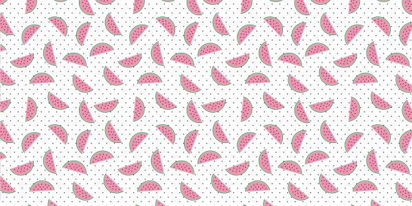 L'anguria affetta un motivo di carta da parati senza cuciture su sfondo bianco con punti. Super allegro e bello modello di frutta. Belle estati e carta da parati alla moda!