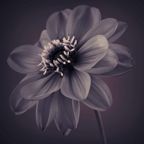 Primo piano di un fiore di dalia scuro. Abbinate questa carta da parati fotografica alla vostra casa per creare ancora più atmosfera.