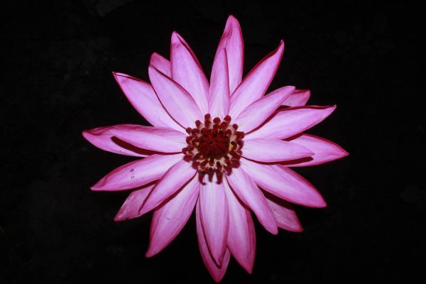 Fiore di loto fotografato dall'alto su sfondo nero