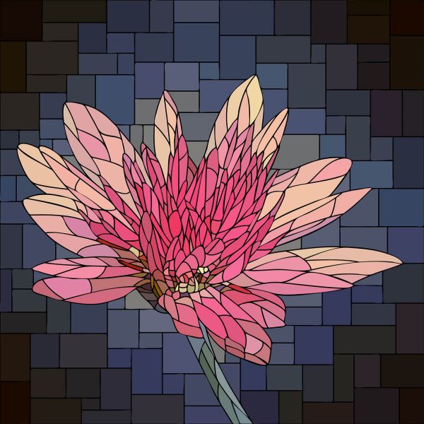 Un fiore rosa colorato che ha appena iniziato a fiorire. Lo sfondo blu fa risaltare ancora di più il fiore.