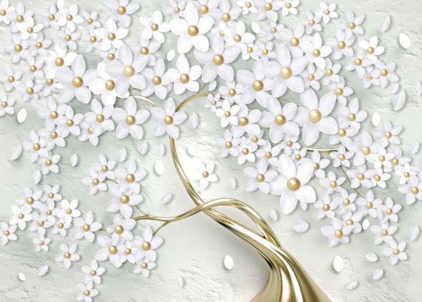 Carta da parati - Fiori bianchi e oro