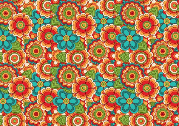 Fiori colorati in stile vintage. Con questo sfondo fotografico, potrete trasformare la vostra stanza in una vera e propria stanza anni '70.