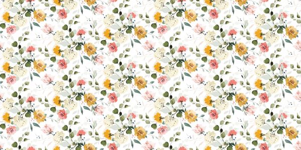 Una scena poetica di fiori di campo in tonalità autunnali si estende su questo design, con i fiori che passano delicatamente dal color sabbia al terracotta profondo e al rosa sbiadito.