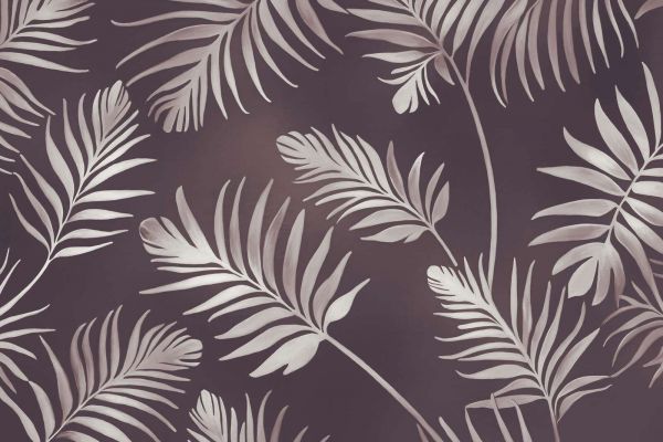 Un motivo raffinato di eleganti foglie di palma su uno sfondo profondo e scuro. Le sottili sfumature di colore conferiscono un aspetto morbido, quasi dipinto. Il contrasto tra le foglie chiare e la base scura crea un'atmosfera elegante e senza tempo, perfetta per un arredamento moderno o esotico.