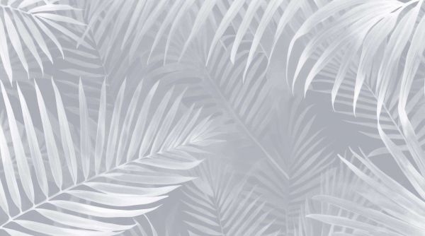 Un design calmante e fresco con eleganti foglie di palma in freschi toni di blu. La morbida stratificazione e le leggere ombre creano un aspetto rilassante e sereno che aggiunge chiarezza e equilibrio a ogni spazio.