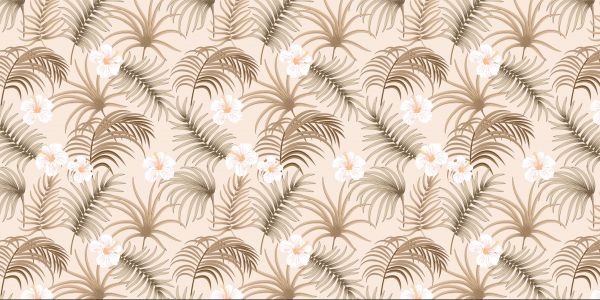 Foglie e fiori di palma con tonalità beige. I toni chiari rendono questa carta da parati fotografica facilmente abbinabile a quasi tutte le case.