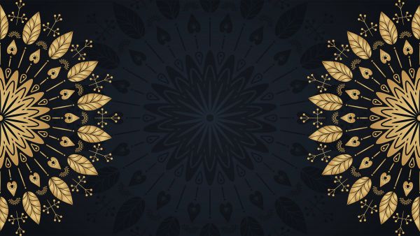 Foglie in mandala su uno sfondo scuro. Le foglie nel mandala rendono questa carta da parati fotografica elegante.