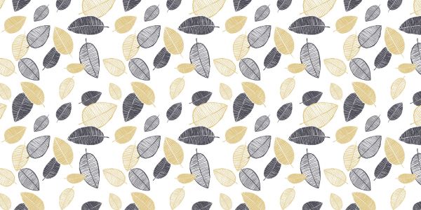 Carta da parati in oro con diversi tipi di oro e foglie nere su sfondo bianco.