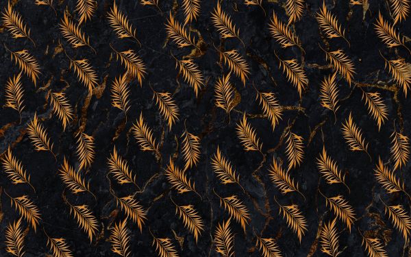 Foglie d'oro tropicali su uno sfondo di marmo nero. Combinate questa carta da parati fotografica nella vostra casa per un'atmosfera ancora maggiore nella stanza.