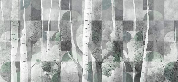 Foresta artistica su carta da parati in bianco e nero e verde acquerello.