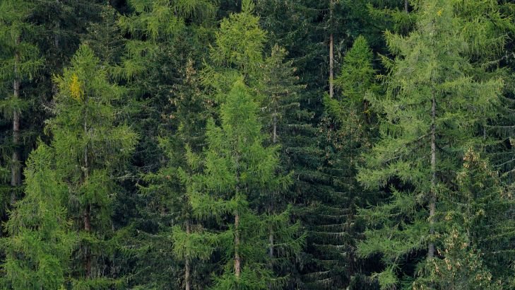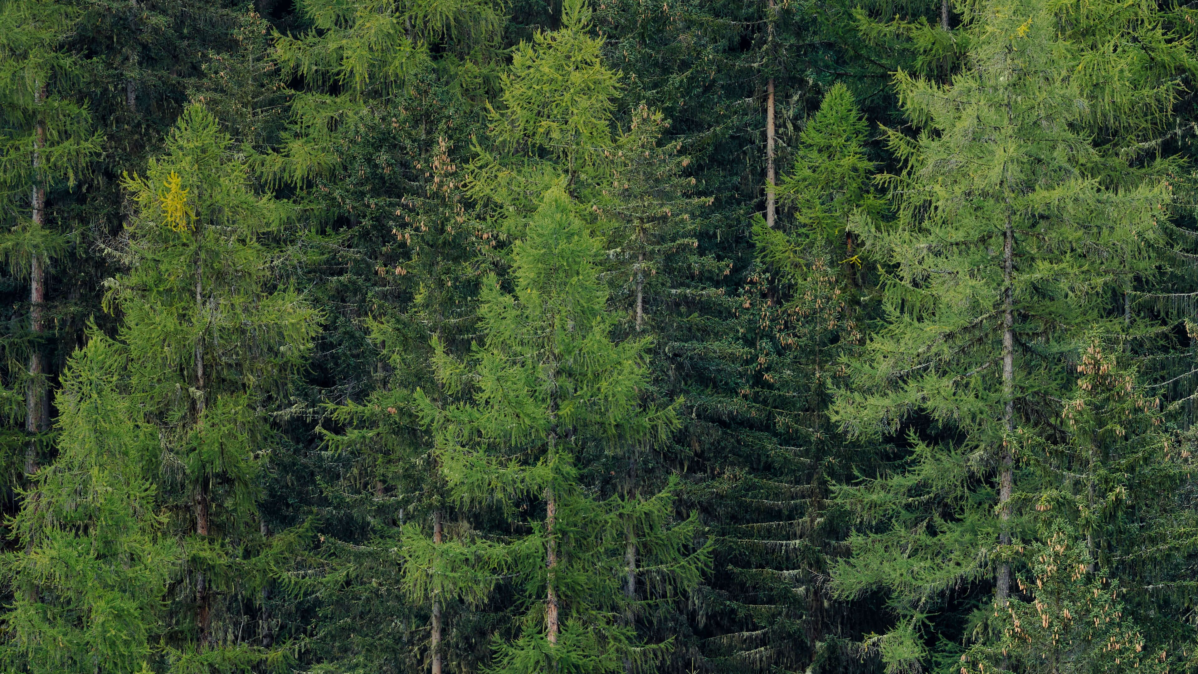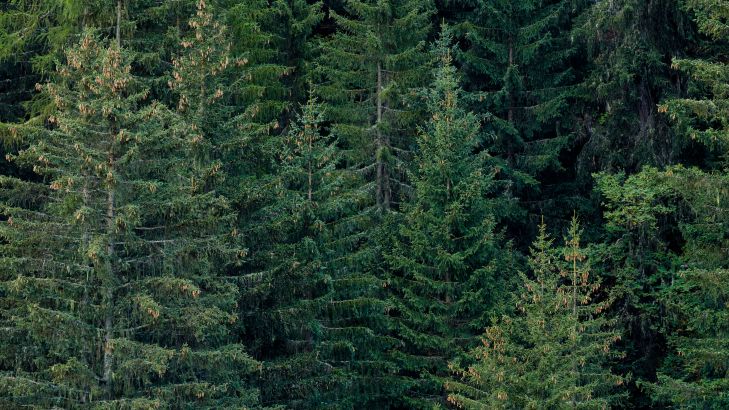 Foresta di abete verde su carta da parati foto. Porta un pezzo di foresta nella tua casa.