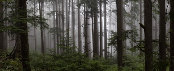 Carta da parati - Foresta durante un giorno di nebbia