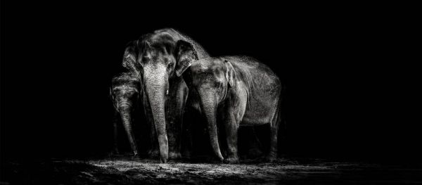 Carta da parati con foto panoramica con foto in bianco e nero di 3 elefanti