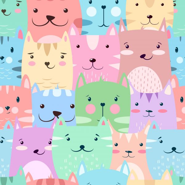 Carta da parati con gatti divertenti e colorati. Da combinare nella stanza dei bambini per creare più atmosfera.