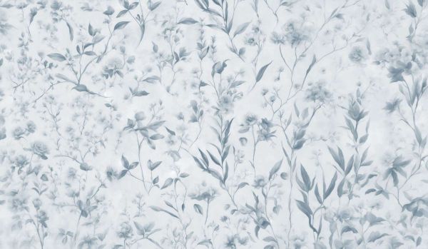 Un motivo floreale rinfrescante in morbidi toni di blu, con sottili sfumature verdi e bianche. Le leggere pennellate acquarose creano un'atmosfera calma e serena.