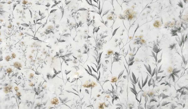 Un motivo floreale minimalista e fresco in tonalità bianche brillanti, accentuato da sottili dettagli ad acquerello. I morbidi fiori e i rametti creano una sensazione elegante e spaziosa.