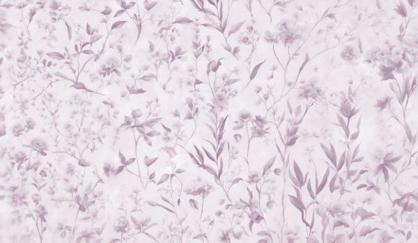 Un motivo floreale poetico in tenui tonalità di lavanda con sottili accenti di lilla e grigio argento. I raffinati petali emettono un'atmosfera serena e sofisticata.