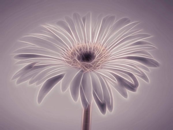 Un fiore di Gerbera con un effetto viola e bianco. Combinate questa carta da parati con foto nella vostra casa per un'atmosfera ancora maggiore.