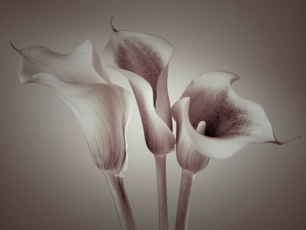 Primo piano di tre calle bianche. Combinate questa carta da parati fotografica in casa per creare ancora più atmosfera.
