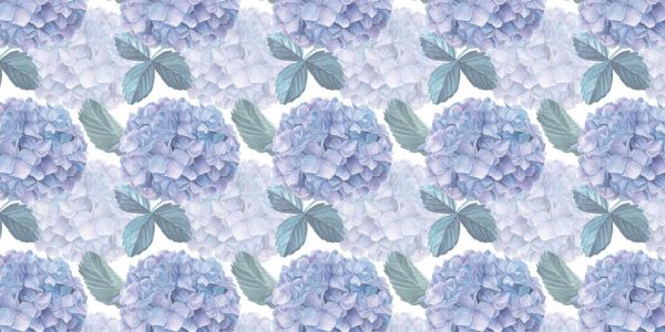 Delicate ortensie in una palette di morbido lilla e blu ghiaccio danno a questo design un aspetto fresco. La sottile transizione dei colori, come se toccata dalla rugiada del mattino, crea un'atmosfera serena e rilassante.