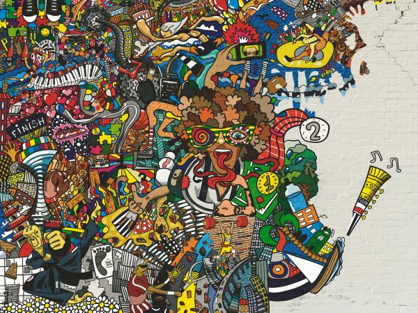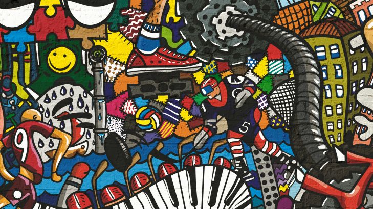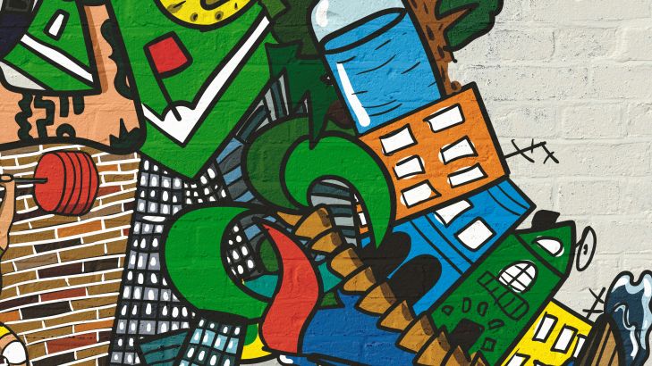 Graffiti caotici su carta da parati fotografica. Questa carta da parati fotografica nella tua stanza farà risaltare la tua parete.