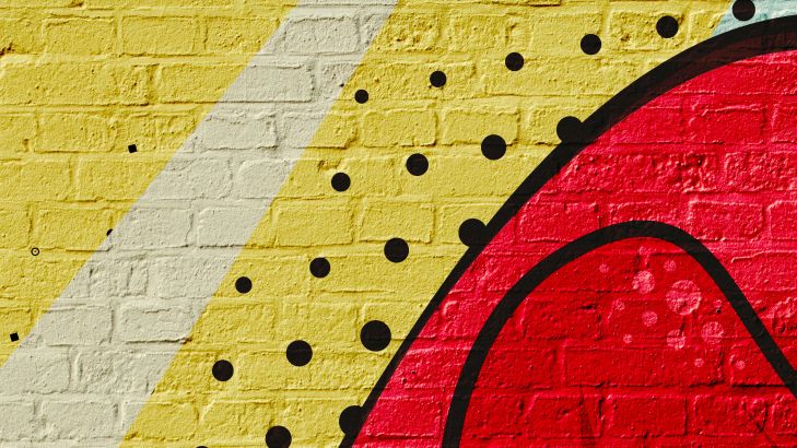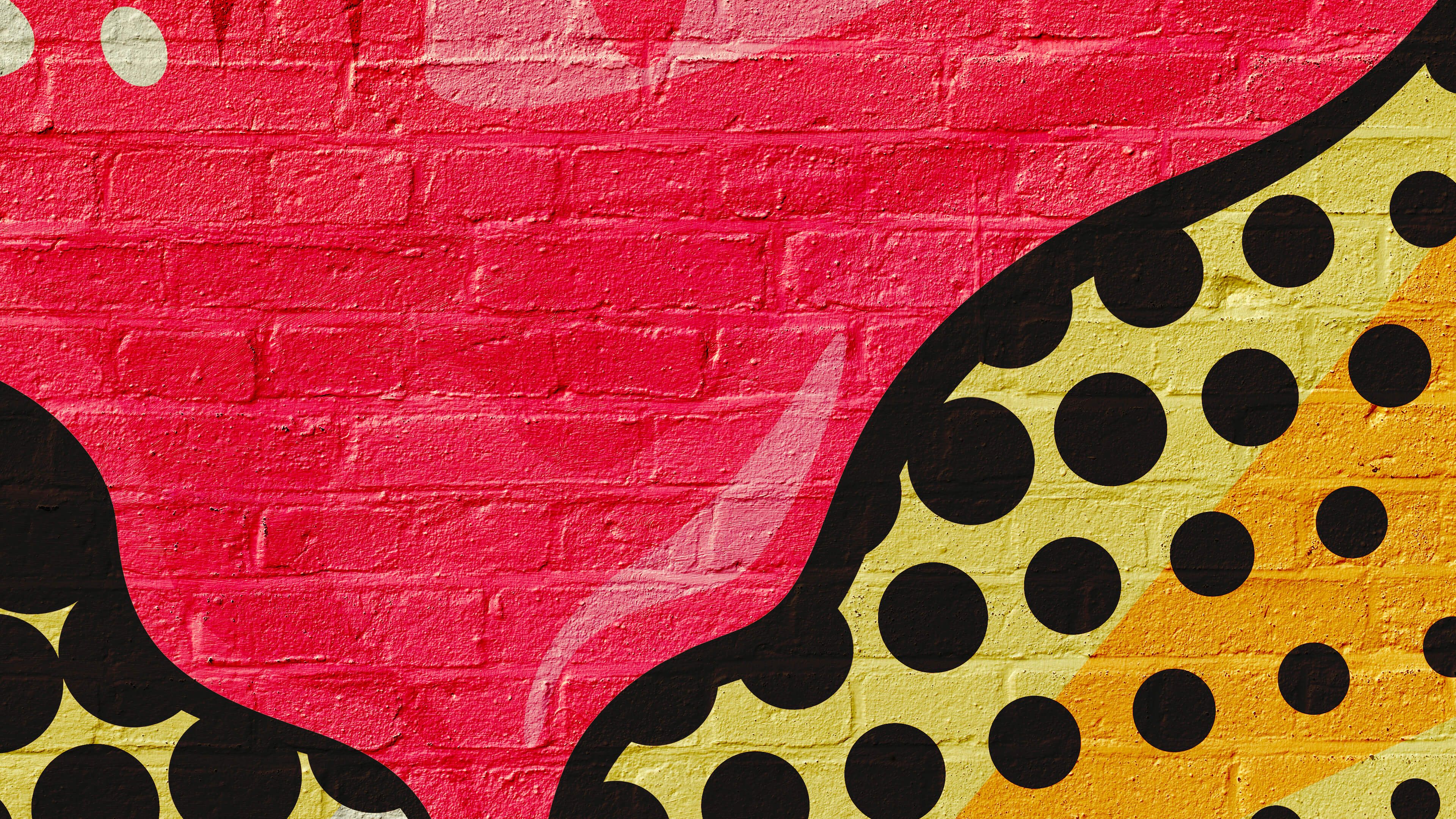 Graffiti di bocca su un muro colorato. Combina questa carta da parati fotografica nella tua casa e crea un'atmosfera unica.