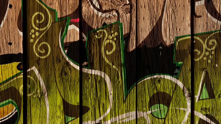 Graffiti fighi su legno. Le piace l'arte moderna? Allora questa carta da parati graffiti è un vero must have per la tua casa.