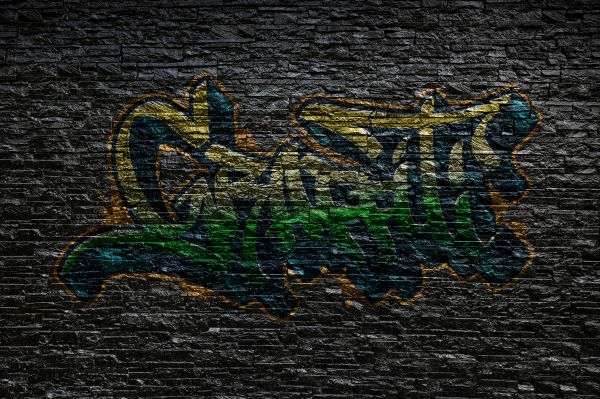 Graffiti su pietre nere per una stanza difficile. Lo sfondo nero rende questa carta da parati di ogni stanza una stanza difficile.