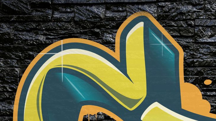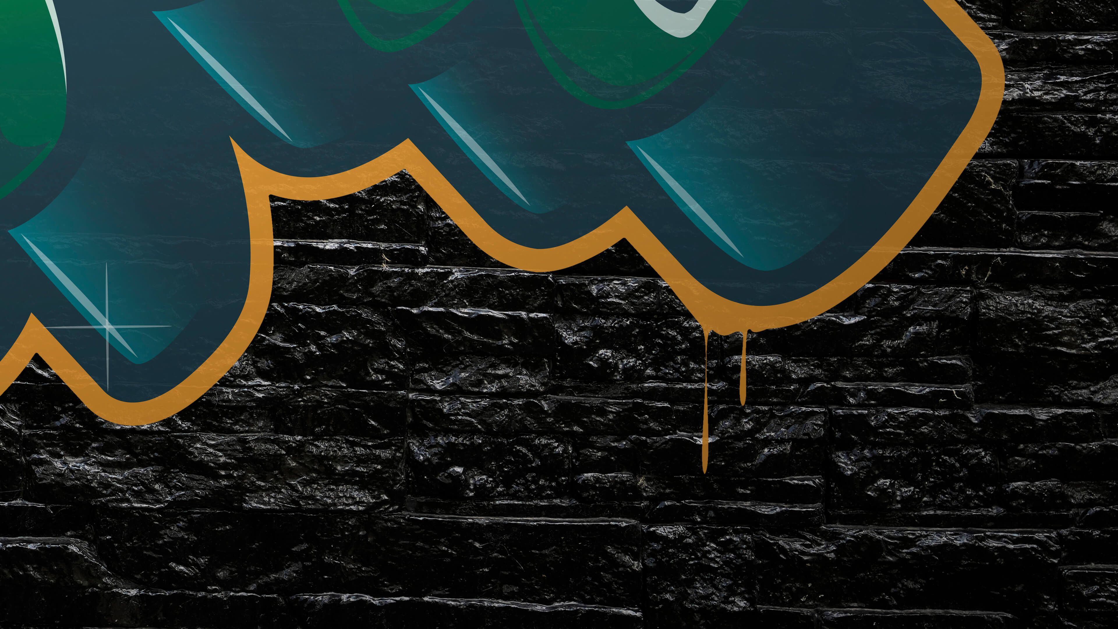 Graffiti su un muro di mattoni neri