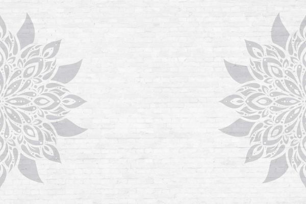 Questo sottile fiore grigio-bianco mandala su uno sfondo di mattoni chiaro porta un'atmosfera serena e armoniosa in qualsiasi spazio. I modelli delicati del mandala, con le loro morbide sfumature di grigio, forniscono un'atmosfera rilassante e rilassante. Il design è ideale per gli stili interni moderni e minimalisti, dove la semplicità e la tranquillità del modello sono centrali.