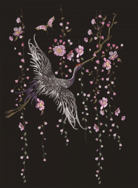 Carta da parati - Gru con fiori rosa