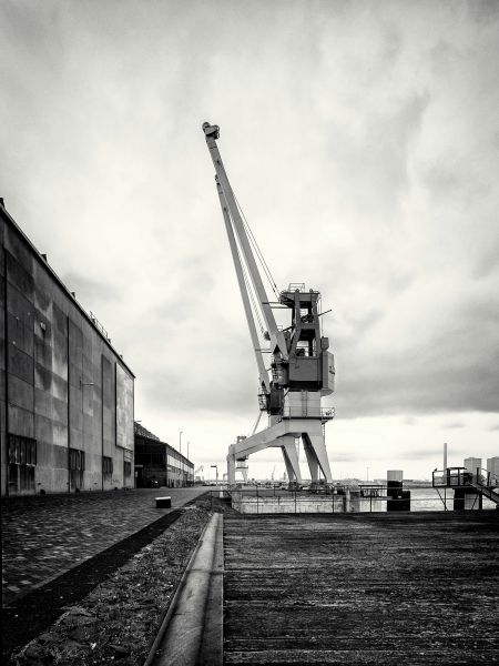L'ex sito RDM di Heijplaat, nel porto di Rotterdam, è uno scenario speciale per la fotografia in bianco e nero. Gli enormi edifici e le gru danno una bella immagine storica di ciò che avveniva un tempo.