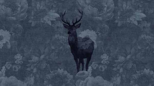 Un cervo appare come un guardiano sottile ma prominente su una tela di tessuto blu profondo. Circondato dai contorni di fiori e foglie, questo design crea un'illusione intrigante di profondità e trama, facendo quasi uscire il cervo dal tessuto.