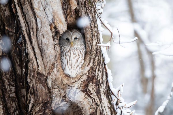 Carta da parati - Gufo bianco in un albero cavo