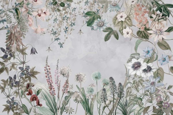 Este diseño irradia una belleza encantadora a través de una mezcla armoniosa de flores y plantas, que refleja elegancia y alegría. Los ricos detalles en las hojas y flores, combinados con una sutil paleta de colores pastel y suaves tonos tierra, lo hacen vivo y refinado. La elegante composición crea una atmósfera acogedora, perfecta para espacios que requieren una apariencia tranquila y natural.