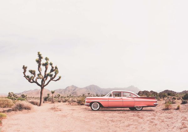 Un'immagine di una vecchia auto nel deserto. Abbinate questa foto alla camera da letto, ad esempio.