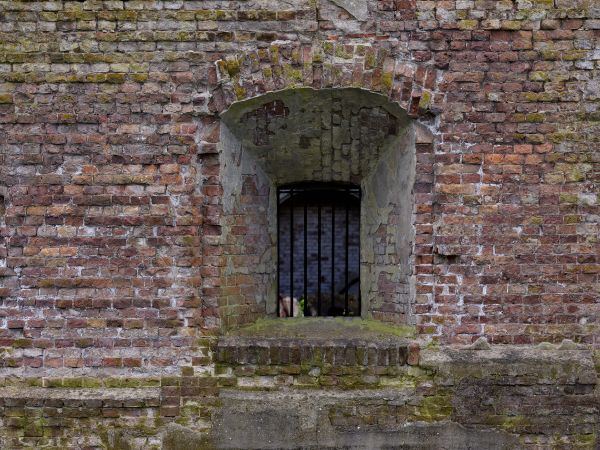 Recesso in un vecchio muro con mattoni. La nicchia in questo muro sembra medievale.