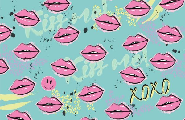 Baciami! Sfondo turchese con labbra rosa, bacio bacio.
