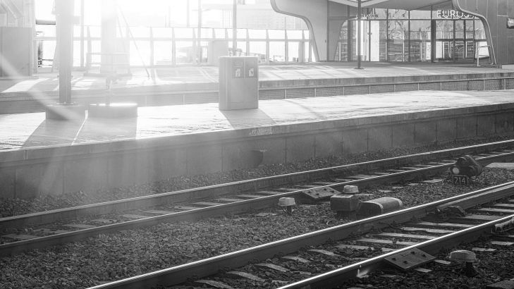 Carta da parati - L'alba su una stazione in bianco e nero