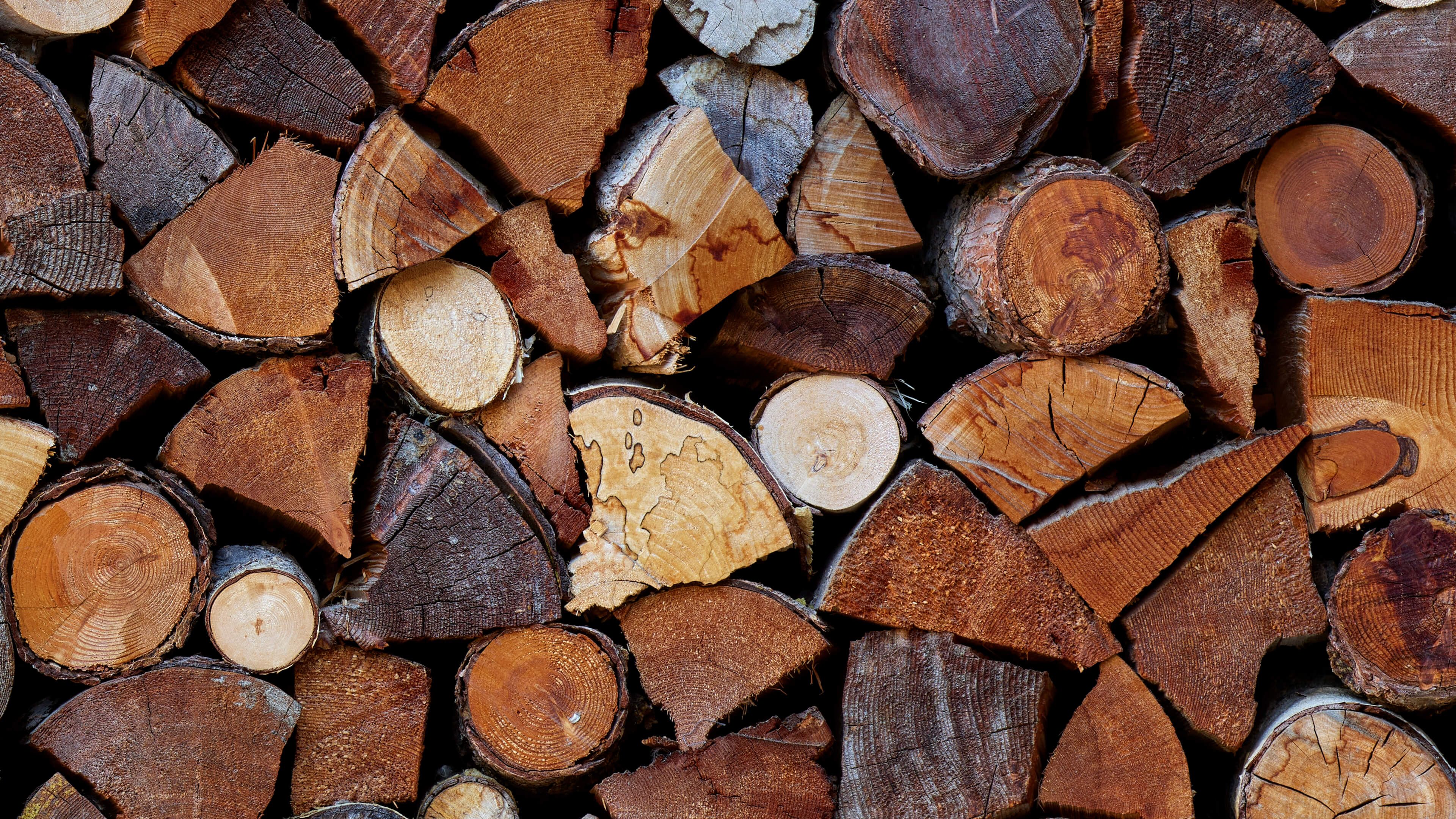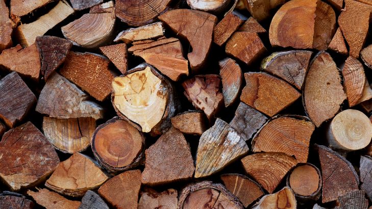 Bella catasta di legno con diversi tipi di colori. Questa carta da parati fotografica di diversi tipi di legno è ideale vicino alla stufa a legna per una calda atmosfera nella tua casa.