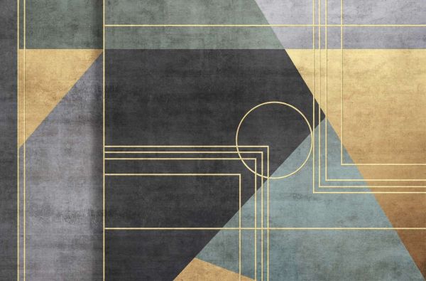 Questo design raffinato è un moderno omaggio allo stile art déco, con una combinazione di colori unica che unisce morbidezza e lusso. La struttura geometrica è composta da linee rette, angoli e cerchi disposti in una griglia rigorosa. Le linee dorate formano un elegante contrasto con le superfici sottostanti in grigio antracite, verde mare, blu grigiastro e oro metallico morbido. Le texture morbide e invecchiate sullo sfondo conferiscono al design un tocco autentico e leggermente industriale. Questo crea un piacevole equilibrio tra rigore grafico e invecchiamento naturale. L'uso di tonalità verde mare e blu grigiastro offre una svolta fresca alle influenze classiche dell'art déco. In un interno eclettico, questo design diventa un vero punto focale. Combinalo con mobili in velluto verde smeraldo o blu notte, dettagli in ottone e accessori artistici per un aspetto ricco. Anche in uno stile moderno-chic, questo design si adatta perfettamente, soprattutto in combinazione con mobili minimalisti, superfici in marmo o pareti grigio chiaro. La palette di colori è versatile e si presta perfettamente a spazi dove sono desiderati tranquillità e classe. Pensa a una camera da letto elegante, uno studio chic o un ingresso accogliente. Il gioco di linee grafiche invita a guardare e scoprire, senza risultare opprimente.