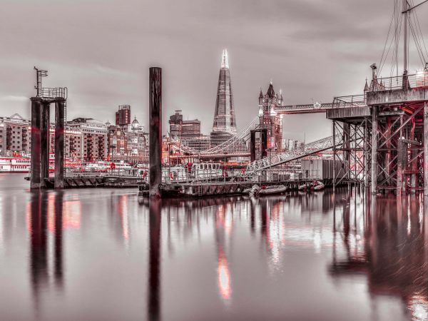 Londra la sera. Le luci rosse della città si distinguono bene.