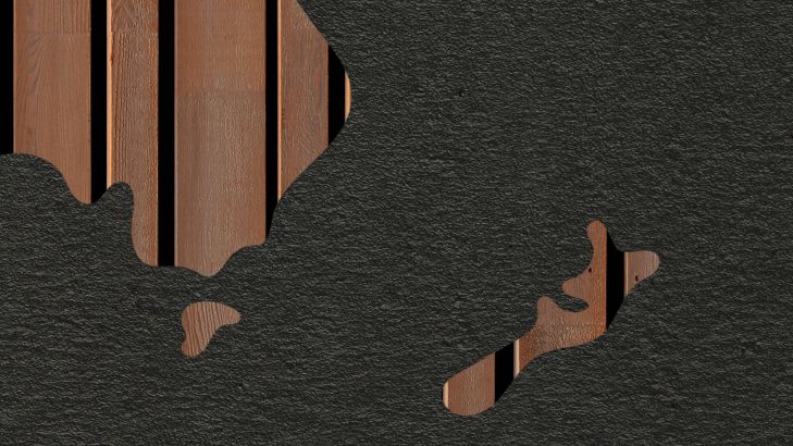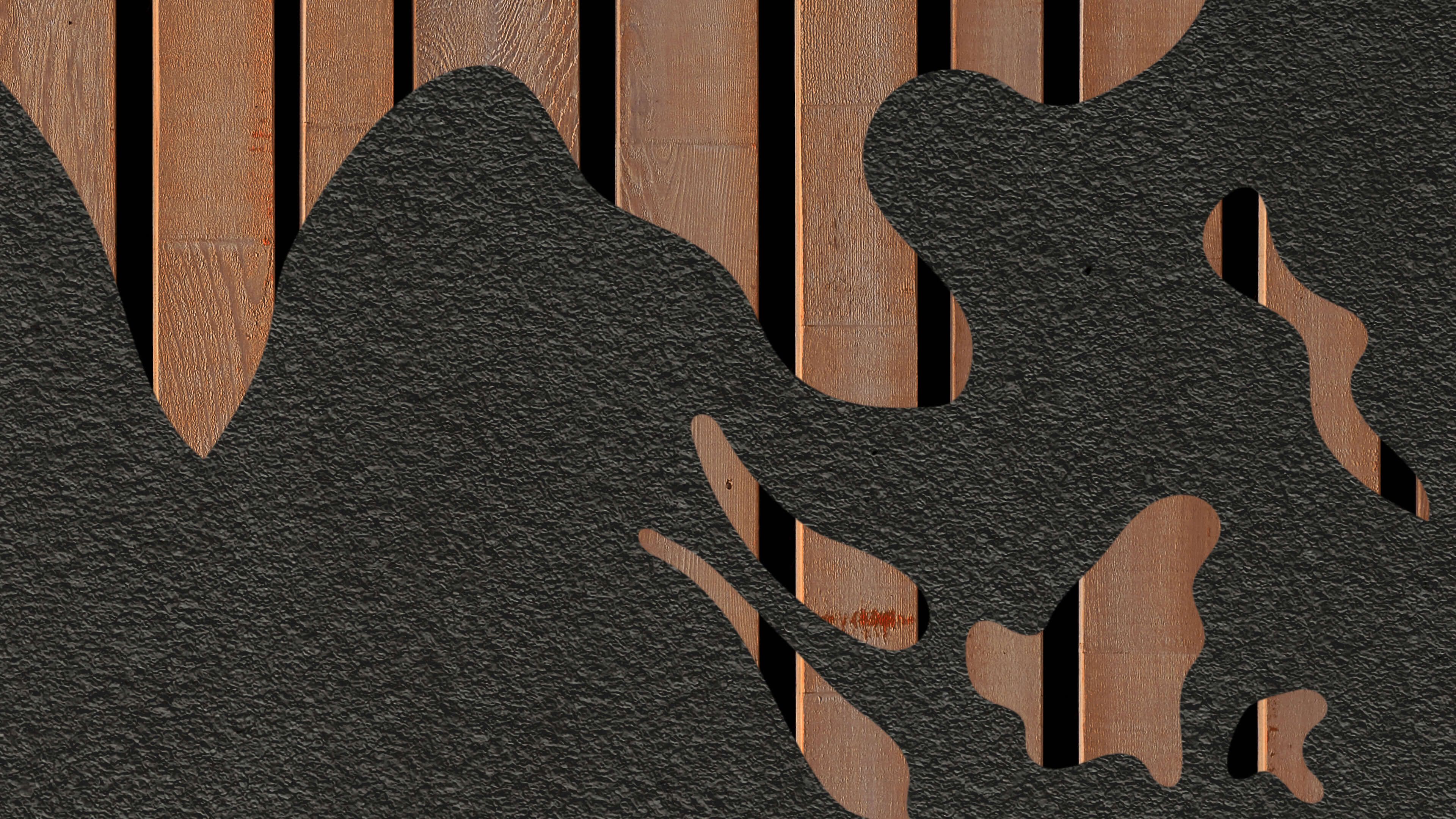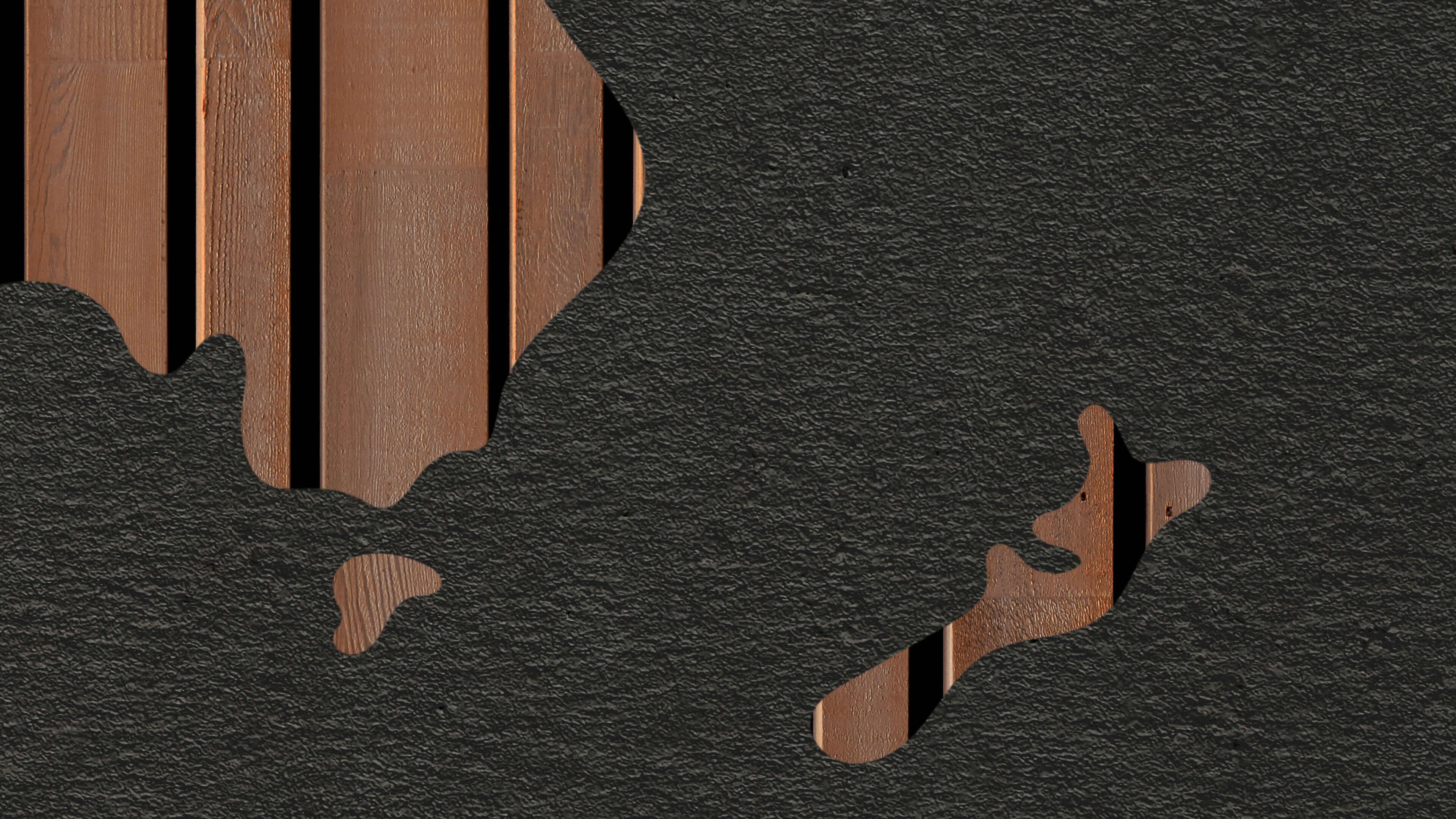 Mappa del mondo con tavole di legno su sfondo grigio. Lo sfondo grigio dà a questa carta da parati un aspetto duro.